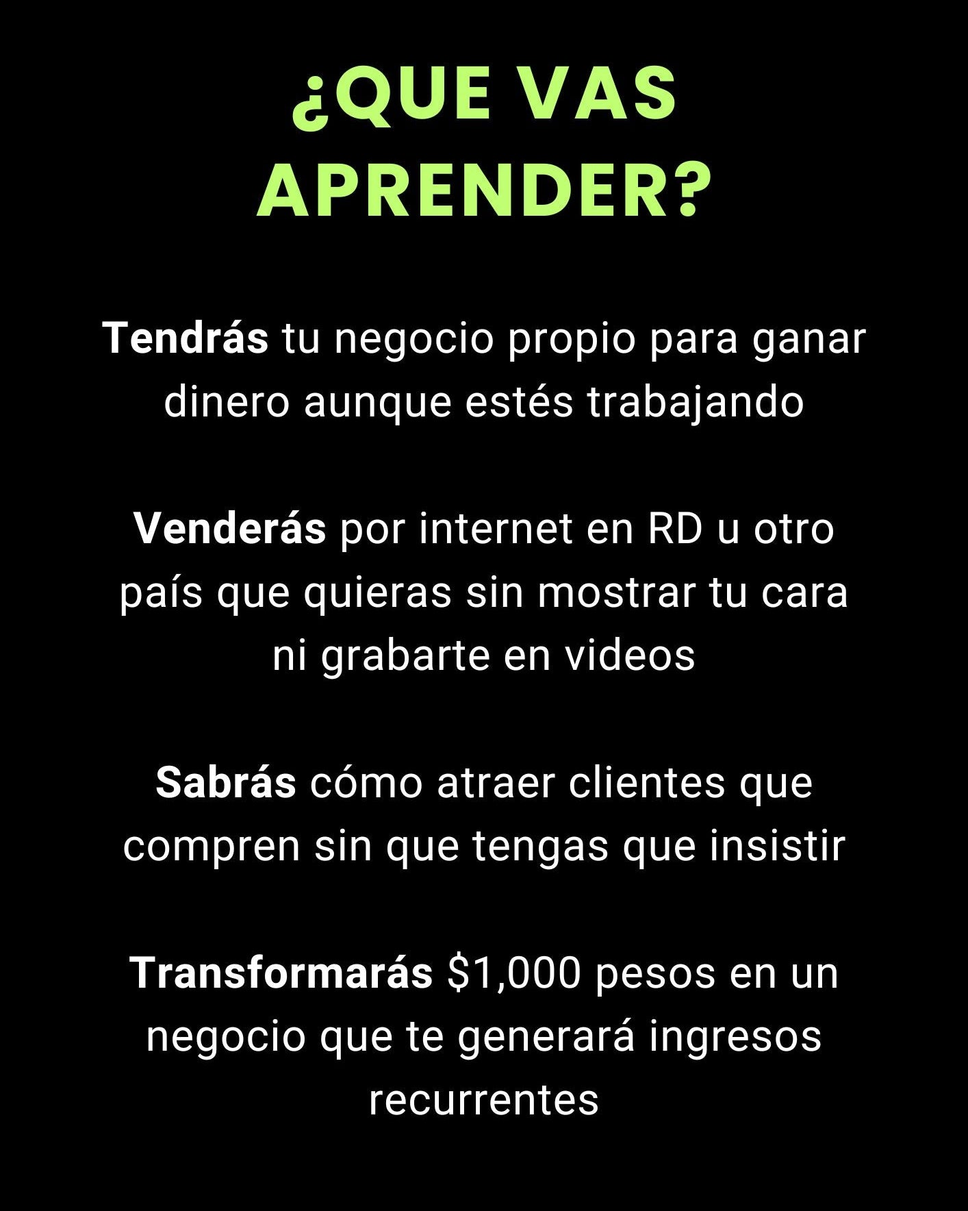 Te enseñamos dos métodos comprobados: atracción orgánica (clientes que te encuentran naturalmente) y anuncios pagados en Meta (Facebook e Instagram). Aprenderás paso a paso cómo crear y optimizar campañas publicitarias efectivas incluso con presupuestos pequeños, además de técnicas orgánicas que no requieren invertir en publicidad.