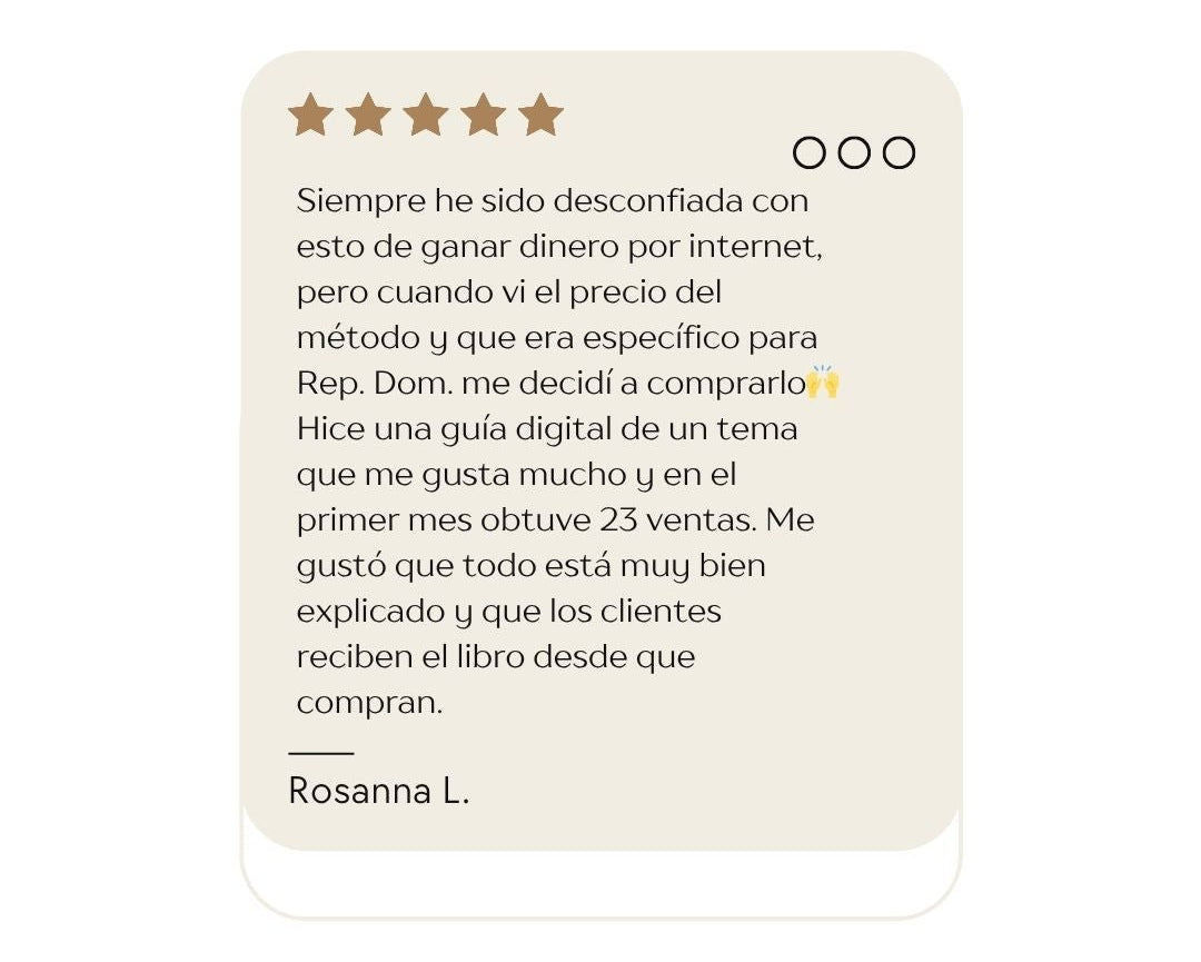 El precio accesible es parte de nuestra filosofía: queremos que cualquiera pueda empezar. Pero no te confundas - este no es un ebook genérico. Es un método probado que normalmente encontrarías en cursos de 5,000-10,000 DOP. La diferencia es que eliminamos todo lo innecesario y te damos solo lo que funciona.